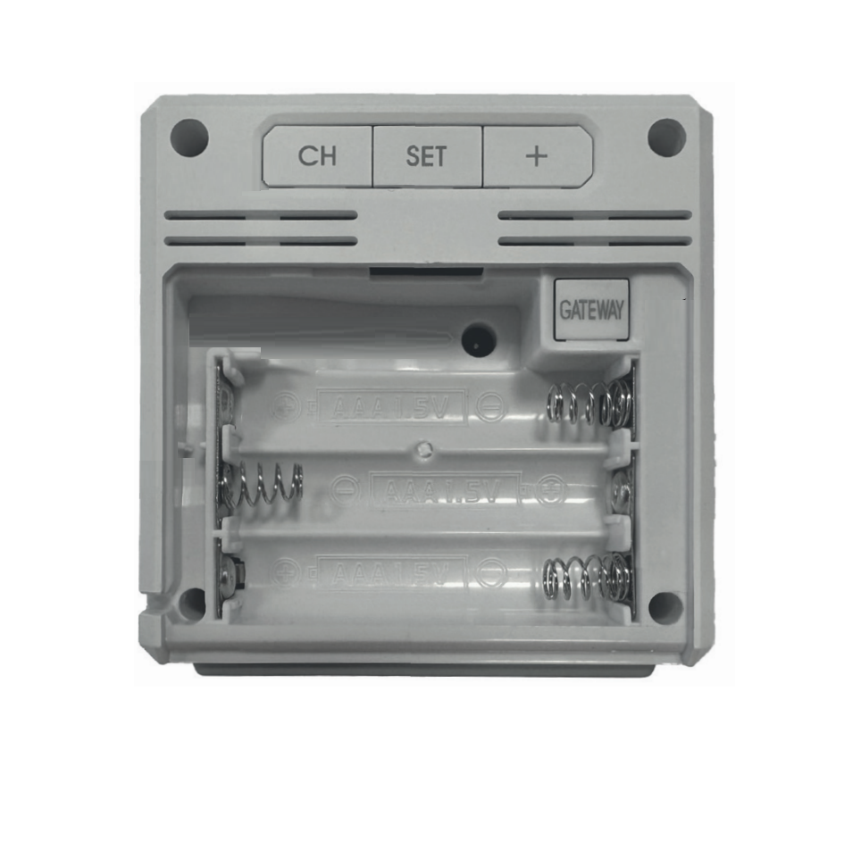 Ein mitgeliefertes Netzkabel versorgt das Gateway mit Strom, optional dienen drei handelsübliche AAA-Batterien (nicht im Lieferumfang enthalten) als Backup – beispielsweise bei Stromausfall oder einem Standortwechsel. Neben Temperatur und Luftfeuchtigkeit werden die aktuelle Uhrzeit sowie das vollständige Datum oder der ausgeschriebene Wochentag in sechs Sprachen angezeigt.